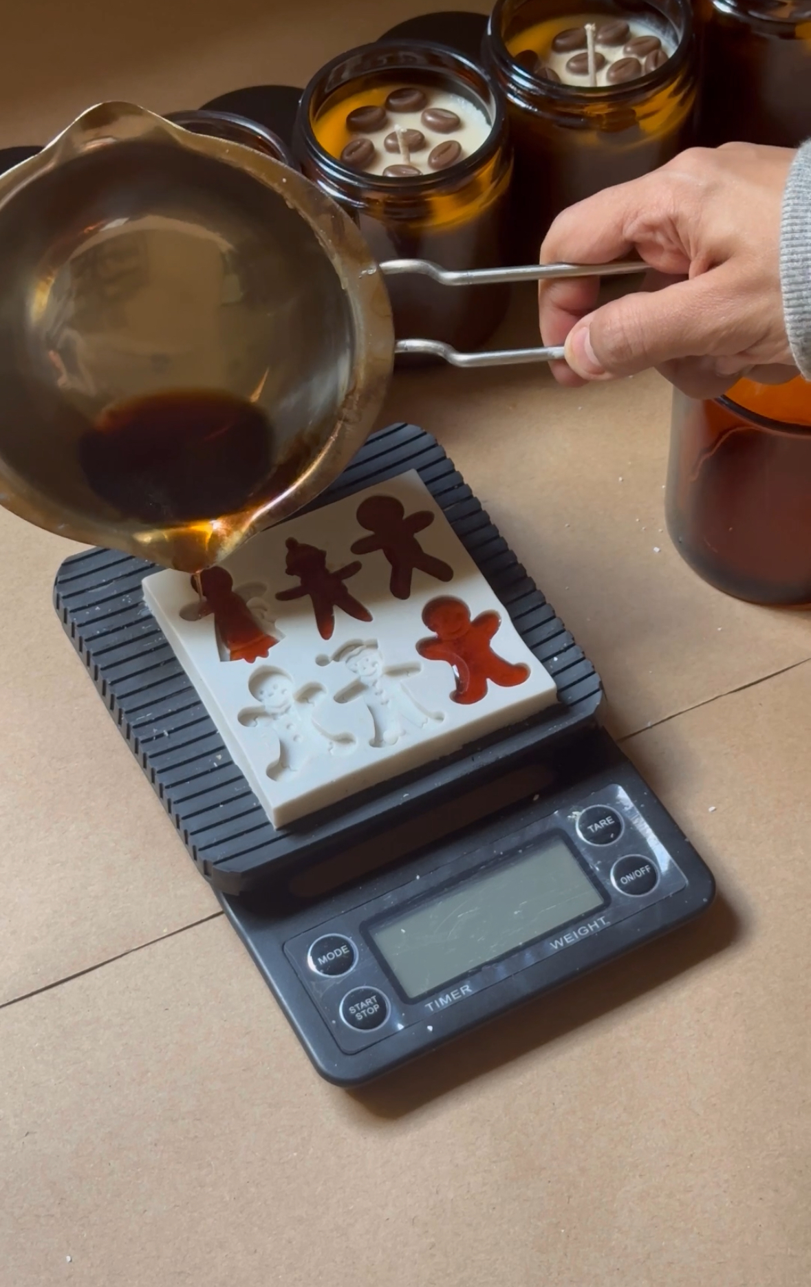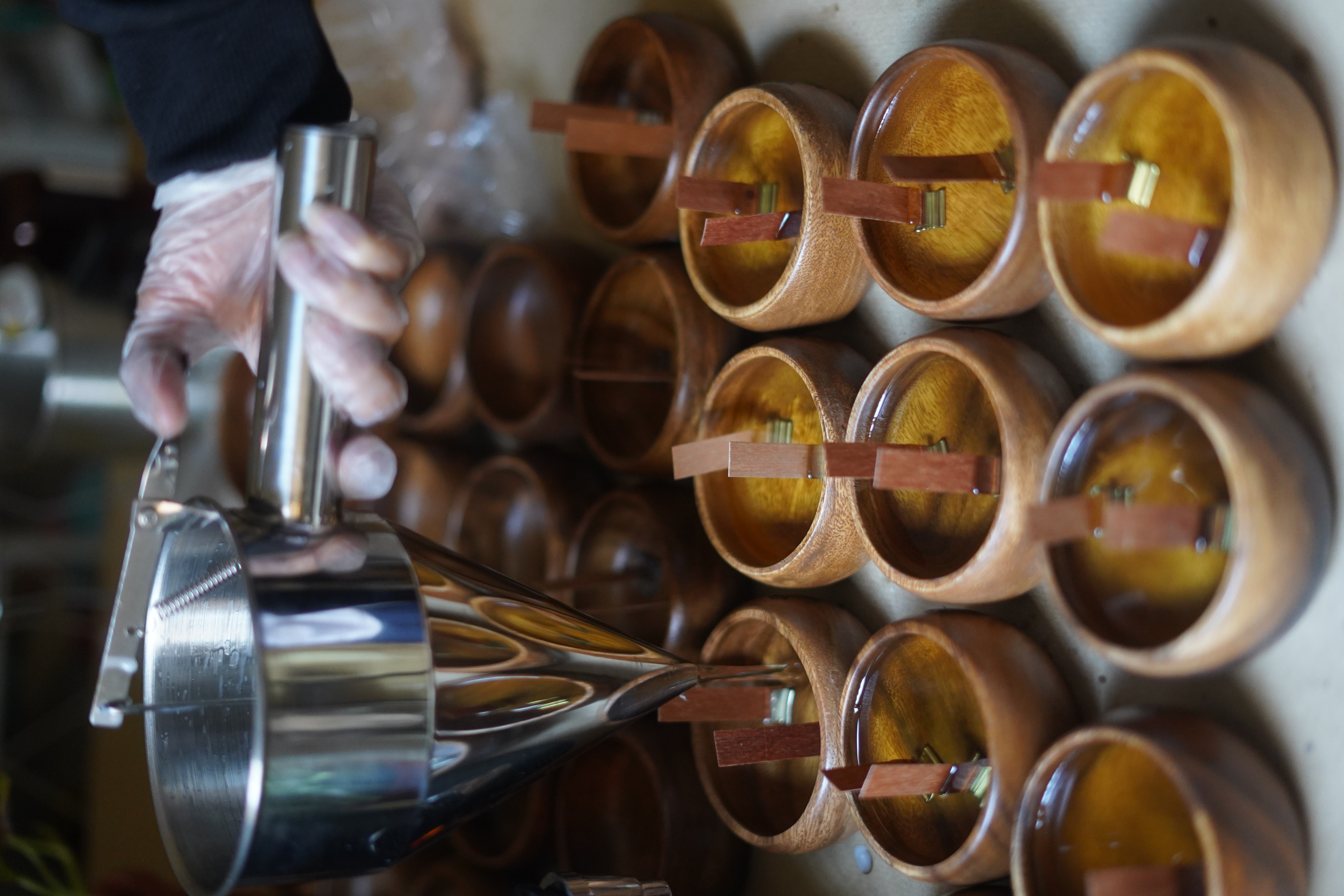 ٥- مرحلة الصب اليدوي للشموع: